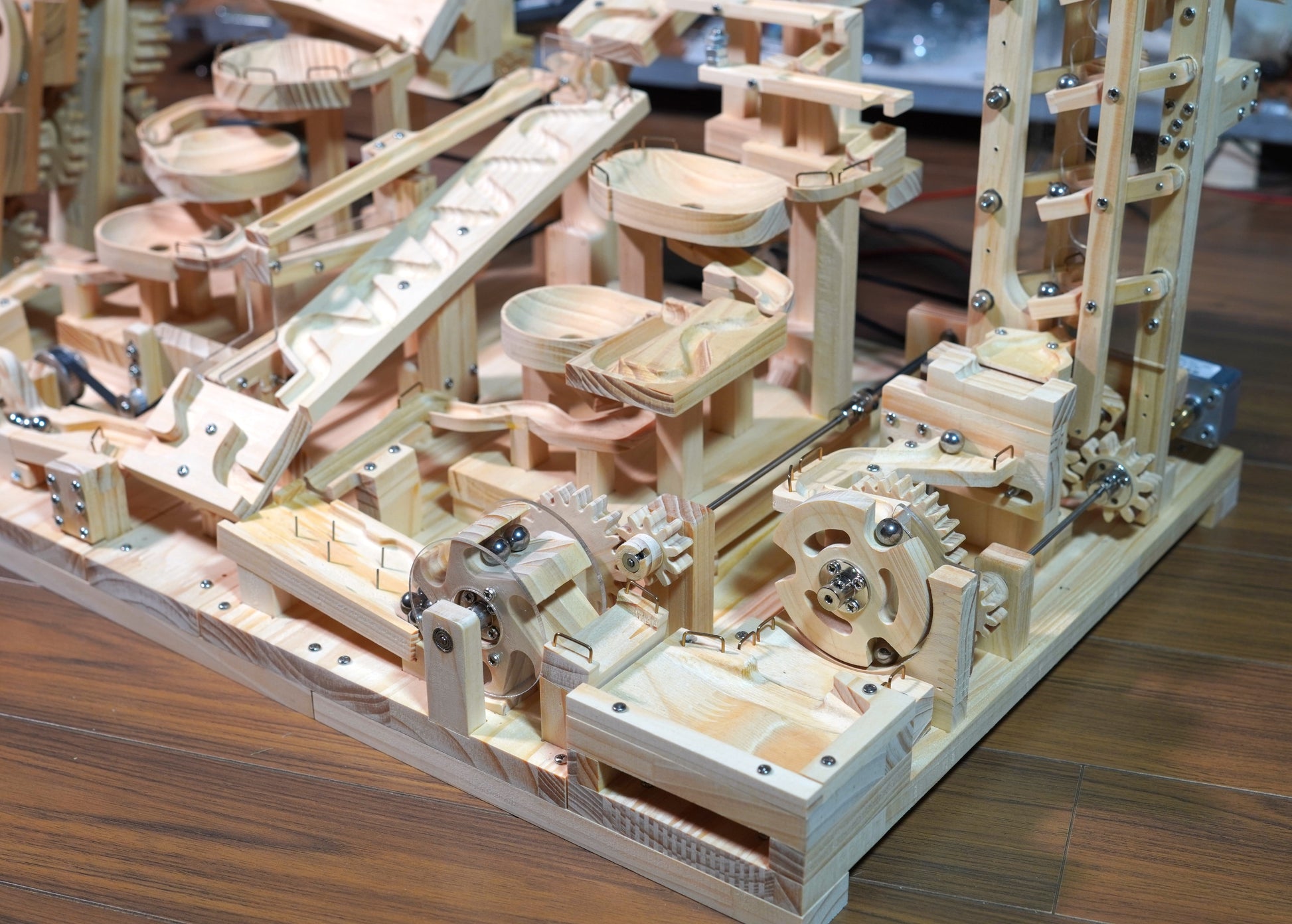 The GBC Double Lifts V2 is an exquisite wooden kinetic marble machine, crafted from high-quality natural solid wood. It features a dual lifting mechanism (Double Lifts Base Machine) paired with two Marble Run modules, delivering continuous and captivating marble motion. Here’s what makes it exceptional: